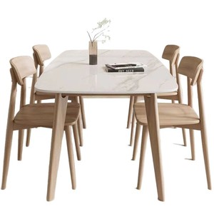 北欧岩板实木餐桌椅组合家用小户型吃饭桌子简约轻奢长方形西餐桌