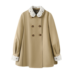 现货2025秋新款宽松蕾丝娃娃领中长款外套LF25Q21SC247