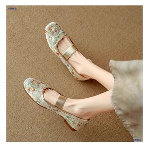 2025新款秋中式国风旗袍平底汉服绣花平底鞋刺绣方头单鞋玛丽珍鞋