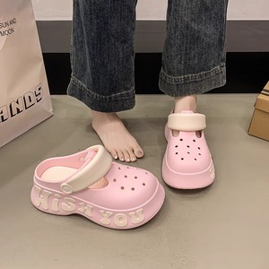 玛丽珍洞洞鞋女夏季外穿时尚字母EVA厚底增高沙滩防滑包头凉拖鞋