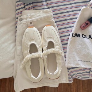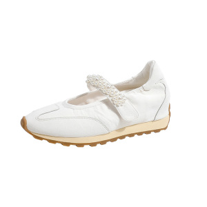 羊皮版~小众设计珍珠真皮小白鞋女魔术贴厚底休闲板鞋德训鞋单鞋