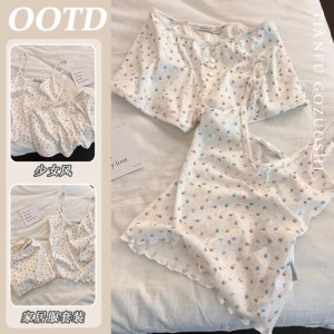 【带胸垫】ins风卡通睡衣女夏季新款可爱学生宿舍短袖居家服套装