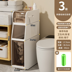 【17.5CM单侧扔纸口】缝隙垃圾收纳柜3层+30只垃圾袋♜