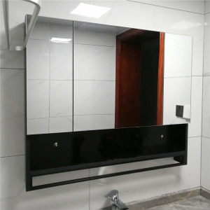雅致黑-普通储物镜柜【带毛巾架】_【110CM】