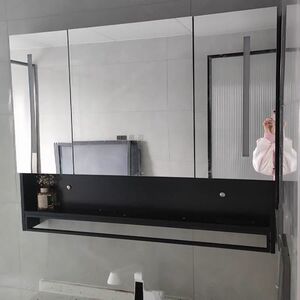 雅致黑-普通储物镜柜【带毛巾架】_【100CM】