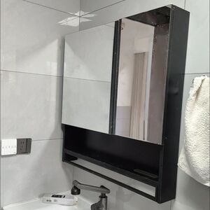 雅致黑-普通储物镜柜【带毛巾架】_【60CM】