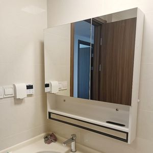 月光白-普通储物镜柜【带毛巾架】_【80CM】