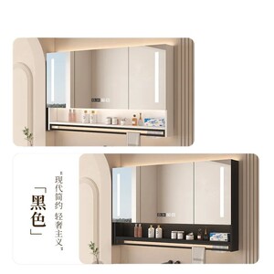 雅致黑-智能豪华镜柜【带毛巾架】_【100CM】