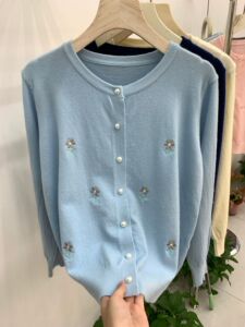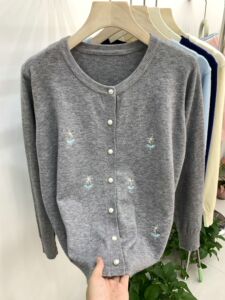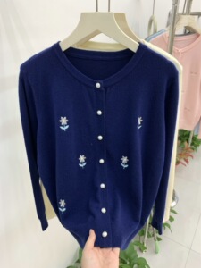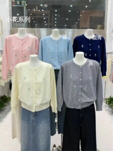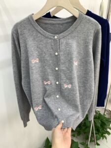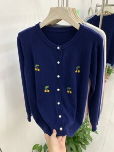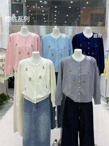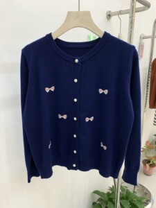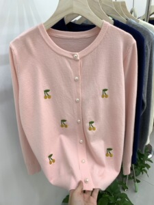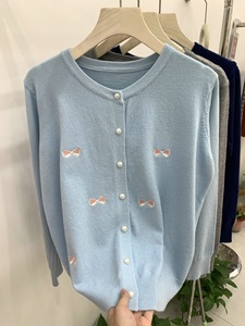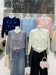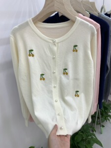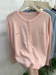 2025初秋新款樱桃百搭毛衣开衫女装 通勤单排扣长袖多巴胺蝴蝶结