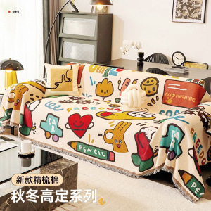 ins卡通风沙发垫全包沙发套沙发巾一整张沙发盖布防猫抓沙发布毯