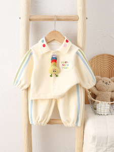 25新款韩式风童套装卫衣套装婴幼儿a类立体玩偶立领polo上衣卫裤