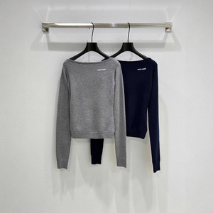 25早秋新款减龄百搭不挑人一字肩字母提花单穿打底上衣女款