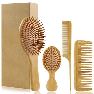 跨境爆款楠竹气垫梳四件套竹木顺发按摩气囊梳扁梳大齿梳套装