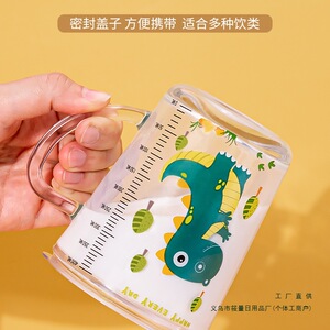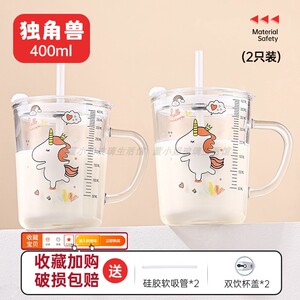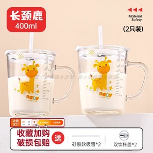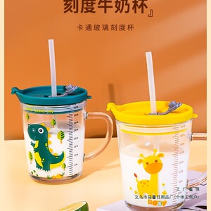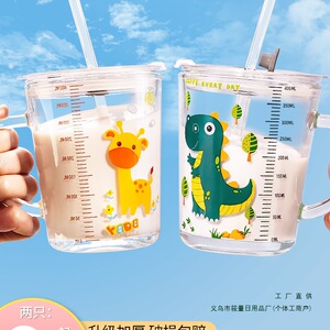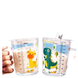 ストローガラスカップ、ウォーターカップ、女性用高見え子供用スケールミルクカップ、粉ミルク、家庭用ハンドル付きドリンクカップ