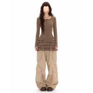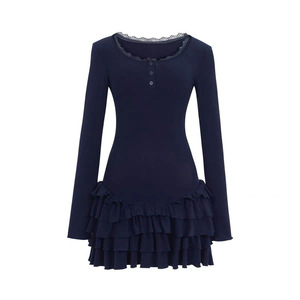 法式气质荷叶边长袖连衣裙女秋冬季新款百搭蛋糕裙内搭打底短裙子