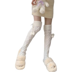 跨境Lolita洛丽塔毛线针织长筒袜圣诞节毛球麻花过膝袜堆堆地板袜