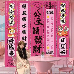 店铺橱窗打卡公主请发财道具条幅氛围新年装扮拍照2025女神节挂布