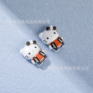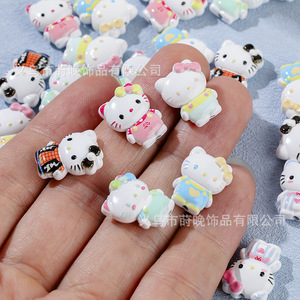 锌合金烤漆可爱卡通KT猫穿孔diy手机链发饰手链串珠饰品配件材料