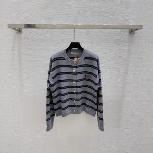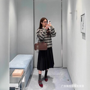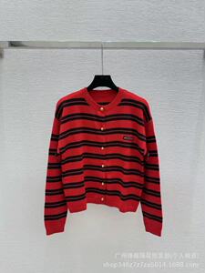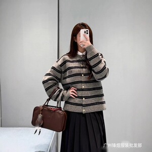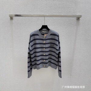 深圳南油正确高版本MM家25早秋新款条纹撞色圆领长袖针织开衫上衣