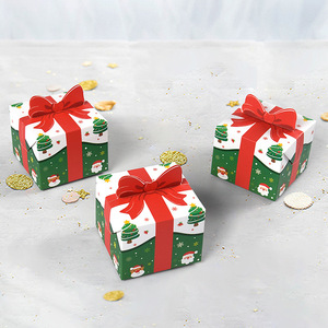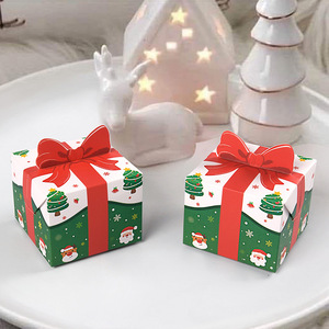 卡通可爱红色立体蝴蝶结方形圣诞糖果盒圣诞节礼品包装盒10pcs/包