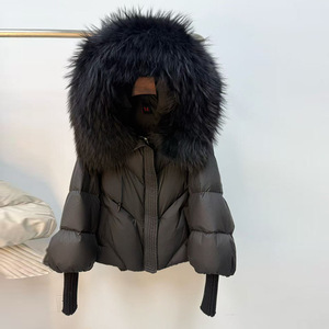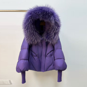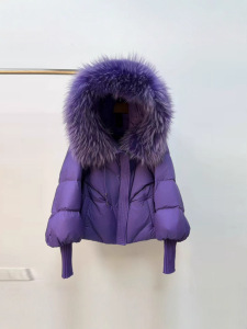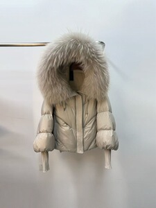 欧洲站2025冬新款高端狐狸大毛领连帽羽绒服女短款白鸭绒宽松外套