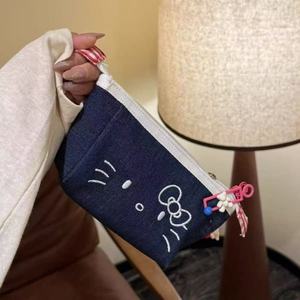 ハローキティデニム鉛筆バッグ刺繍 kt パターンアニメ漫画学生鉛筆バッグ文具箱かわいい収納袋