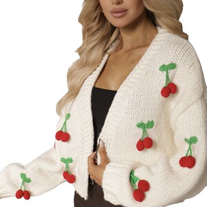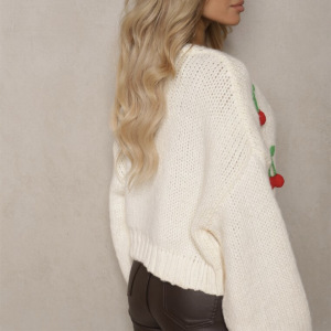 立体樱桃图案女式优雅毛衣开衫2025秋冬新款欧美跨境纽扣长袖针织