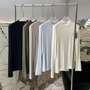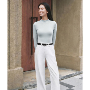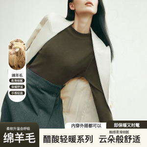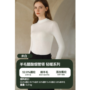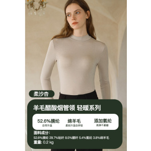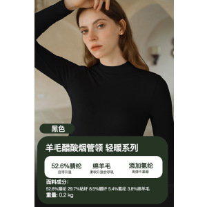 百搭修身长袖烟管领打底衫 绵羊毛混纺醋酸纤维发热腈纶保暖上衣