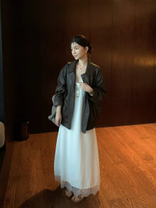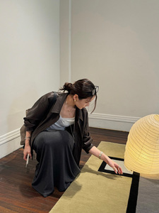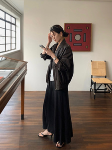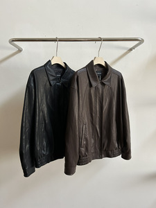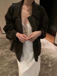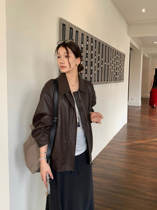 元派bluepops2025秋季新款复古机车风皮衣宽松翻领夹克外套A5541