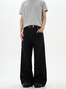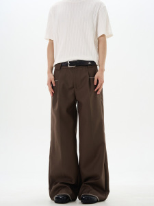 美式复古手缝拼接设计垂坠感休闲西裤男女新款宽松百搭直筒长裤潮