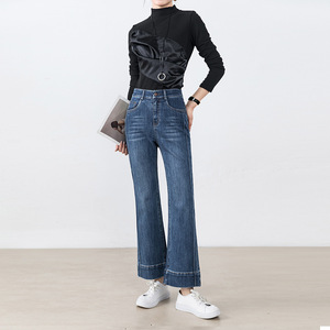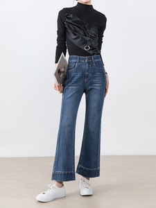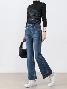 高腰微喇牛仔裤女显瘦2025秋季新款弹力百搭小个子九分直筒喇叭裤