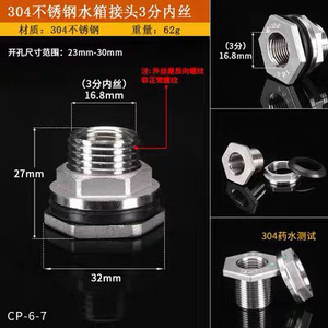 304不锈钢接头水箱开孔水塔水桶鱼缸内丝出水口配件接口排水批发