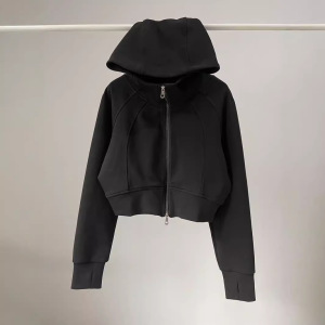 2025秋季美式双拉链连帽开衫卫衣外套女宽松休闲运动短款外套上衣