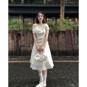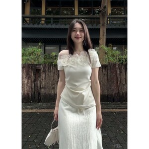 2025夏季新款女法式气质露肩修身花边短袖上衣高腰显瘦蛋糕半身裙