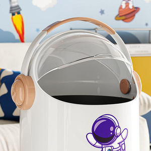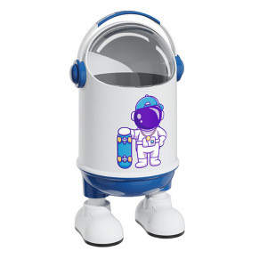 卡通垃圾桶太空人摇盖收纳桶客厅摆件站脚款清洁桶儿童卧室卫生桶