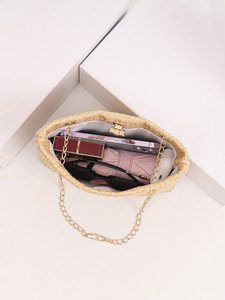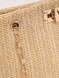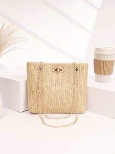 2025跨境爆款草编斜挎包韩版时尚潮流草编锁扣闭合简约小方包草编