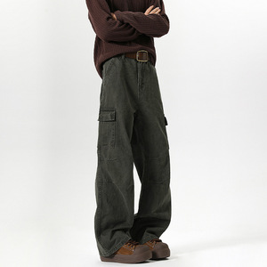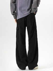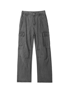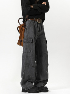水洗灰色直筒工装牛仔裤男春季美式复古做旧阔腿伞兵裤宽松休闲裤