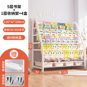 层数升级【加粗碳钢】XXL码120cm-5层书架+1层收纳架+4白盒固定款