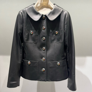 速卖通2025女式真皮皮衣 名媛风修身羊皮小翻领外套海宁皮衣批发