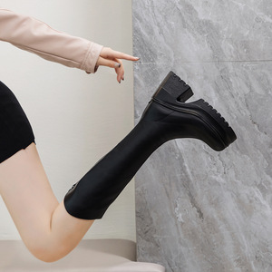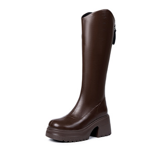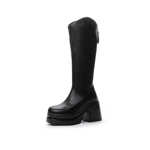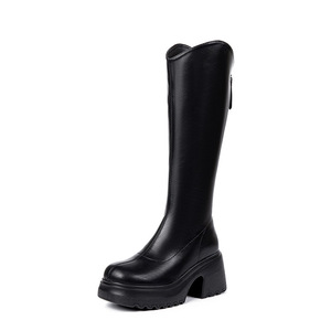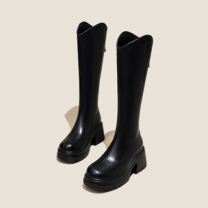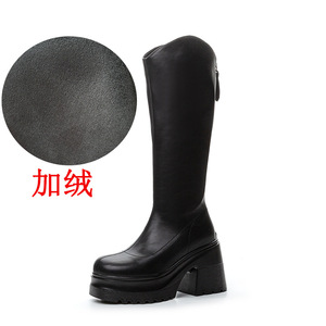 10cm高跟长靴女2025秋季新款小个子增高长筒靴厚底粗跟高筒骑士靴