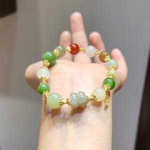 和田玉多宝搭配并蒂莲多色手串DIY设计款圆珠手串多样性拍一发一