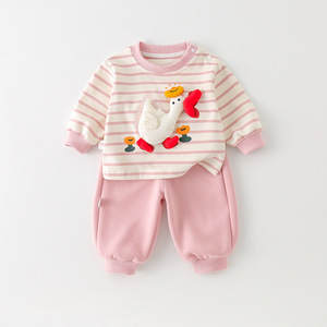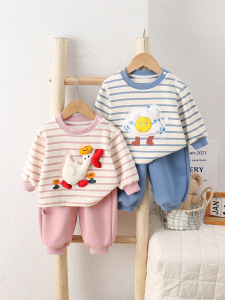 婴幼儿秋季2025新款a类棉婴儿男女宝宝卡通裤套装小童衣服秋装