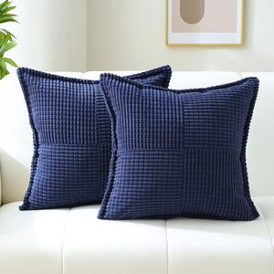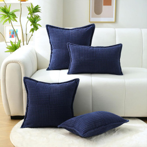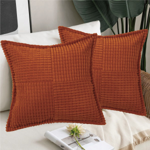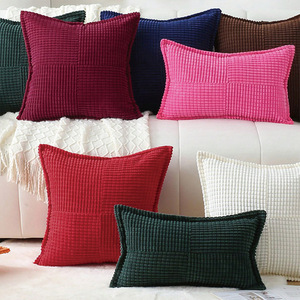 跨境亚马逊纯色条纹十字拼接玉米粒抱枕灯芯绒抱枕套沙发方形靠背