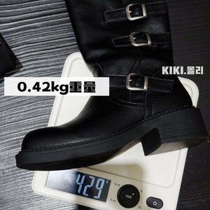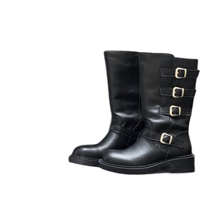 韩版复古休闲英伦风女2025早秋新款中筒皮带扣粗跟显瘦百搭马丁靴