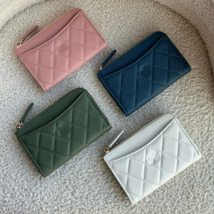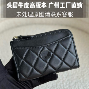 新款菱格女士短款钱包广州外贸批发卡包真皮鱼子酱小香拉链零钱包