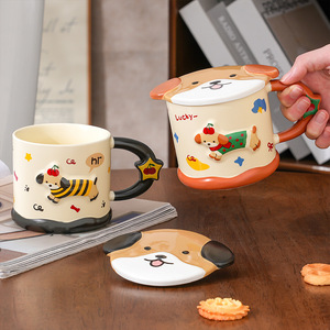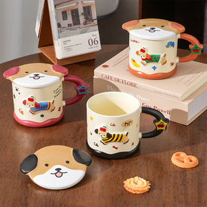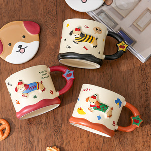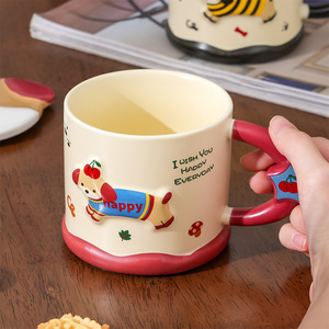 腊肠小狗陶瓷杯女新款2025高颜值大容量伴手礼品马克杯带盖早餐杯