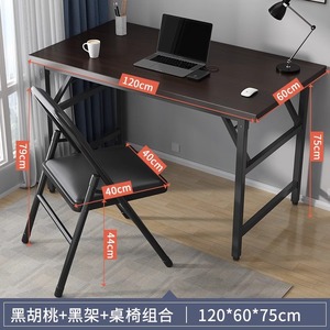 桌椅套装【黑胡桃】120*60-加粗钢架 黑椅