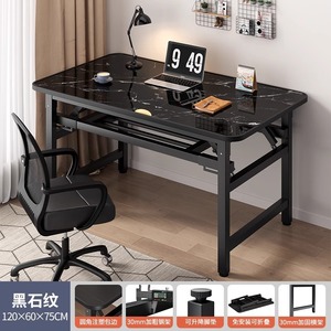 【加粗桌腿丨免安装丨稳固不晃】黑石纹120*60*75cm