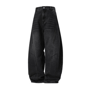 秋のメンズ構造分割ウォッシュ加工カーブソードジーンズ、ルーズシルエット、トレンドレトロストレートロングパンツ