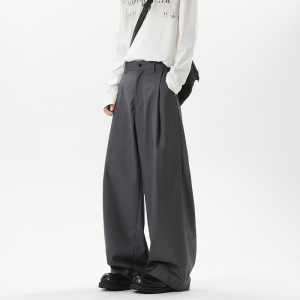 黑色褶皱西裤男春秋垂感宽松阔腿休闲裤子潮牌美式高街直筒西装裤